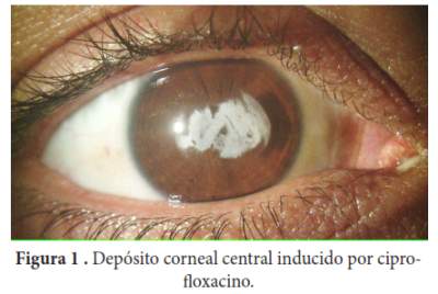 Diversos medicamentos de uso tópico, entre ellas las fluoroquinolonas, pueden producir depósitos corneales (1,2,3,4,5). Estos antibióticos bactericidas, se utilizan en oftalmología como profiláctico en el pre y postoperatorio, así como en el tratamiento de infecciones oculares.