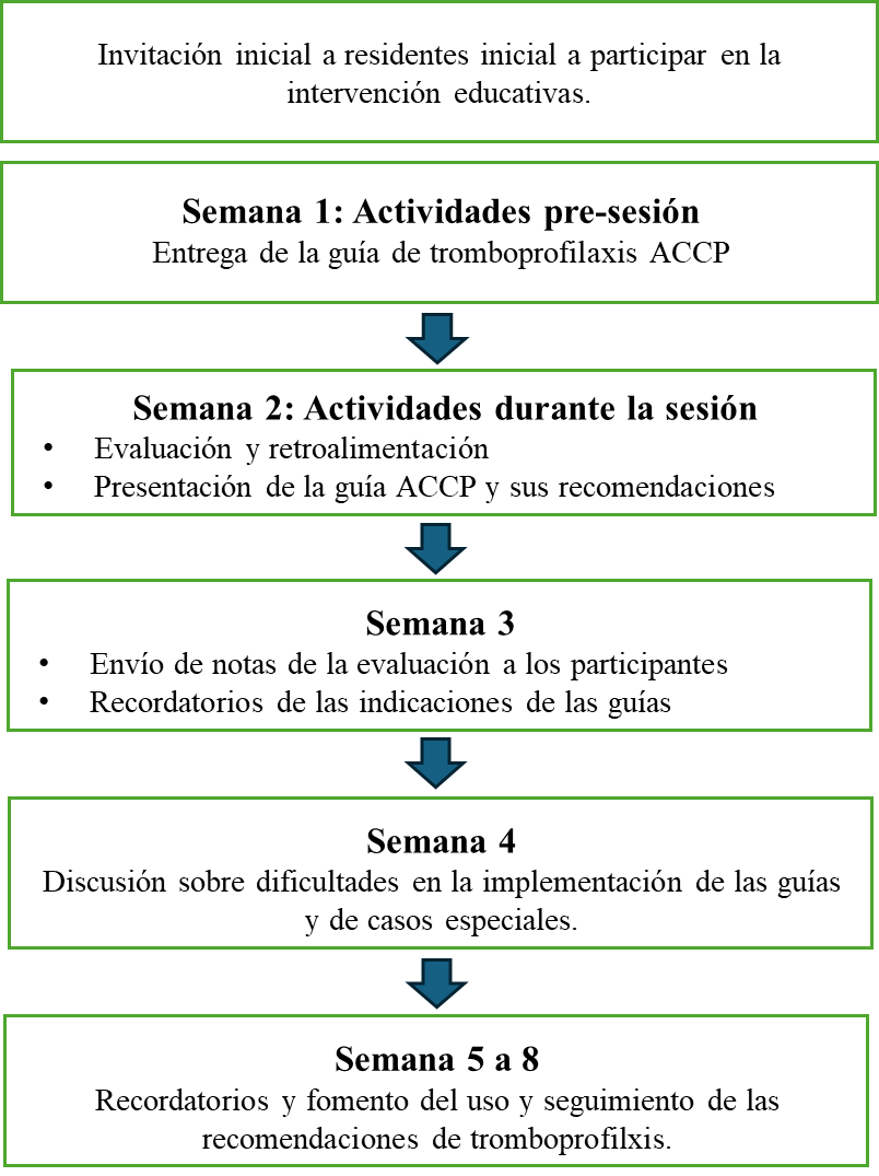 Este estudio se realizó porque se desconocían estudios en nuestro medio que mostraran la efectividad de una intervención educativa sobre la frecuencia de prescripciones adecuadas de tromboprofilaxis en pacientes hospitalizados.