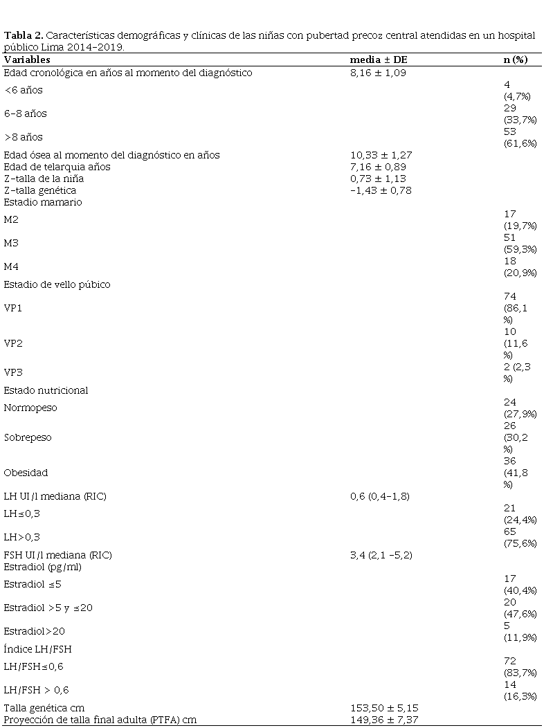 Clinical, biochemical, and radiologic findings of girls with early puberty attended at a public hospital in Lima, Peru