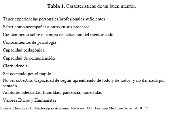 En la tabla 1, adaptada de Humphrey (14), se enumeran algunas características que debe tener todo buen mentor.