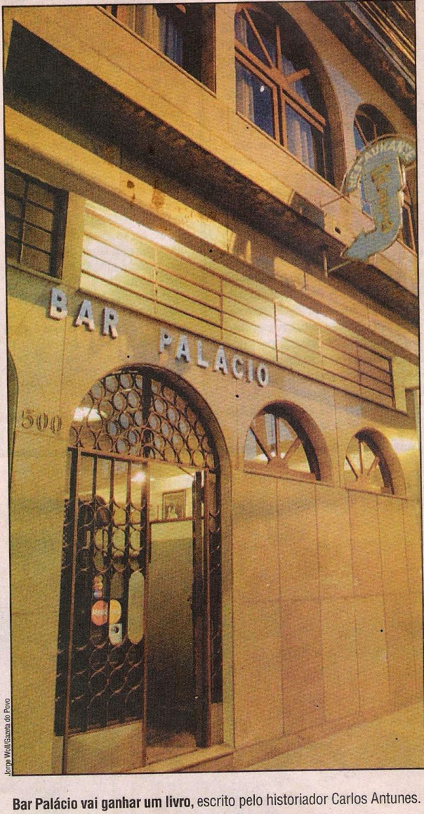 [...] O Bar Palácio estaria sendo despejado, com 30 dias para deixar o ponto. E estaríamos vivendo despercebidamente, nesta temporada de noites vazias e maridos cigarras, as últimas noites de convivência com os fillets grisées, os ‘mineiros de botas’, as ‘farofas de ovo’, ‘os frangos a alho e óleo’, que, por mais de 40 anos, fizeram a delícia de gerações de notívagos, saciaram a fome nas madrugadas frias, aplacaram paixões encubadas, deram calorias para que outras seguissem em frente
