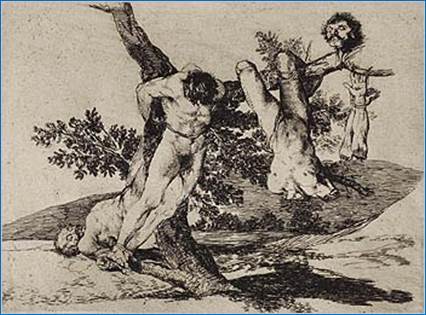O tratamento é elíptico: a execução dos atos violentos não foi mostrada pela câmera. Contudo, o efeito simbólico pela exibição das “provas” da violência, ou seja, dos corpos, já é suficiente para evocar todo o terror associado à imagem da “árvore da morte”, presente em lendas e em representações de atrocidades de guerra, como nas gravuras da série dos Desastres, de Goya. Os corpos pendentes ficam lá expostos, como “lição” para aterrorizar, garantindo que outros camponeses não queiram burlar as regras dos coronéis, e nem o acordo de concessão de terras entre governo federal e investidores estrangeiros.