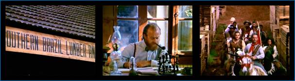 Um corte na imagem nos fornece a vista de um escritório, no interior da serraria, onde trabalha um dos “gringos”. No ambiente predominam características europeias. O homem de negócios mantém a feição compenetrada enquanto parece fazer cálculos, atrás de uma escrivaninha, com um cachimbo à boca. Em seguida chegam os sertanejos armados.