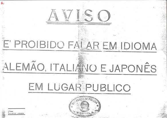Cartaz colocado nos muros do município de Estrela proibindo o uso dos idiomas alemão, italiano e japonês