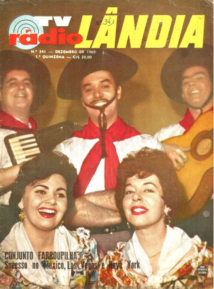 A capa desta Radiolândia é um justo preito a este homogêneo grupo de artistas brasileiros que se chama Conjunto Farroupilha. Gaúchos, amando profundamente as tradições e as raízes da música do seu rincão, eles no entanto transformam-se em intérpretes internacionais quando necessário. Suas gravações expressam a variedade de ritmos e idiomas que são capazes de interpretar, desde a polca alemã até às canções francesas, sem contar com as músicas populares e folclóricas do Brasil. Nesta homenagem [...] relembramos algumas das suas apresentações vitoriosas em nossa terra, agora que eles brilham no palco do Radio City de Nova York. O Conjunto Farroupilha, além de ter-se apresentado em todo o nosso território, já viajou pela Europa e Ásia, e, ao que tudo indica, deverá permanecer muito tempo nos Estados Unidos. (Revista Radiolândia, 1960, S/A, s/p)