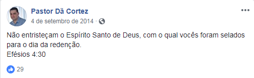 Pastor Dã Cortez (PSD) apresenta-se como candidato de Telêmaco Borba – município da região Centro Oriental Paranaense, localizado a cerca de 200km de Curitiba –, onde atuou como vice-prefeito na gestão 2013-2016. Em sua campanha, fica explícito o apoio e a expectativa das lideranças do partido (Eduardo Sciarra, presidente do PSD, e do candidato a Deputado Federal Evandro Roman) e fica ainda evidenciado o apoio de alguns pastores de sua Igreja. Em seus vídeos de campanha, faz diversas menções a citações bíblicas, defende a presença de um caráter cristão na política e, ainda, chama a atenção dos eleitores para que escolham bem os “guardiões de Deus para proteger a todos nas esferas federal e estadual”. Pastor Dã Cortez alcançou um total de 8.581 votos em 111 municípios, sendo que Telêmaco Borba representou 73,76% deste quantitativo.