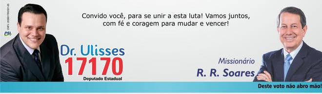 Em movimento semelhante ao que ocorreu na campanha do Missionário Ricardo Arruda, Dr. Ulisses (PSL) busca se associar ao carisma de R. R. Soares, fundador da Igreja Internacional da Graça de Deus, que foi identificado em alguns dos flyers, banners e fotos de campanha. Com o slogan “Fé e coragem para mudar”, e com uma campanha que envolveu visitas em diferentes igrejas do Paraná, o candidato coloca como uma das prioridades de sua proposta a preservação da família tradicional. Dr. Ulisses não foi eleito, obtendo 8.863 votos, distribuídos em mais de 210 municípios do estado, sendo os maiores quantitativos concentrados em Curitiba (cerca de 20%) e Cascavel (10%).