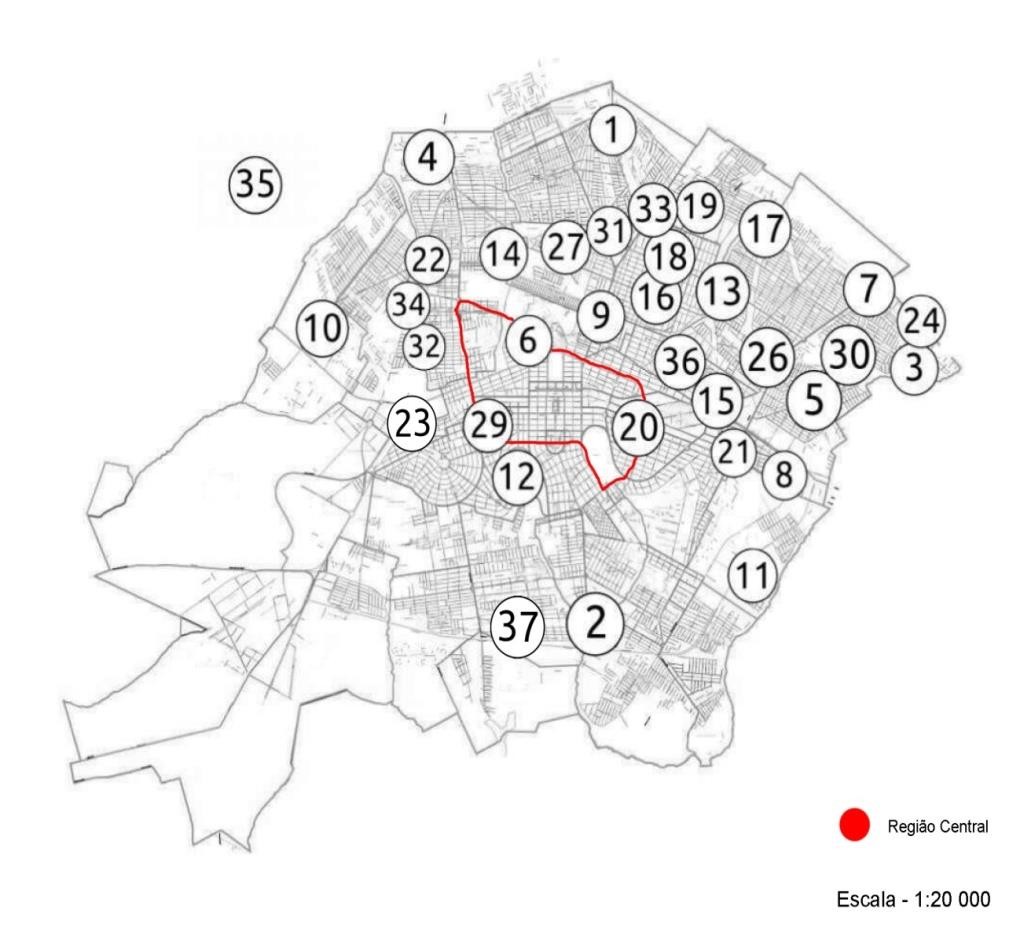 Fonte: Giovane M. Gonzaga, 2017.Desse remanejamento, surgiram bairros como o Conjunto Habitacional Santa Felicidade e a Vila Esperança (CORDOVIL, 2010). Foi também o período de maior fixação de pessoas no Jardim Alvorada, bairro planejado para a população carente da época, composto em sua maioria, por operários de fábrica e trabalhadores braçais. Foi nesse contexto que a maior parte dos terreiros, ainda atuantes na cidade, foi estabelecida.