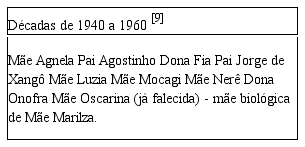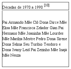 Fonte Giovane M. Gonzaga, 2017.* Lideranças já falecidas.Torna-se esse o grupo com maior número de lideranças que tiveram sua iniciação em Maringá. É também provável que esse período seja o de maior atividade dos terreiros. Tal entendimento decorre do fato de que, com o tempo, os chefes de terreiro deixaram de realizar cerimônias religiosas públicas e passaram a atender individualmente.