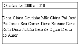 A fim de apresentar as lideranças visitadas e as informações obtidas por meio da pesquisa de campo, criou-se uma linha temporal, iniciando com os mais antigos de nossos colaboradores até os mais novos. Optamos por orientar a linha temporal por meio de tabelas que se referissem aos três períodos destacados de pais, mães-de-santo, benzedeiras e videntes, nomenclaturas que respeitam suas autodenominações.