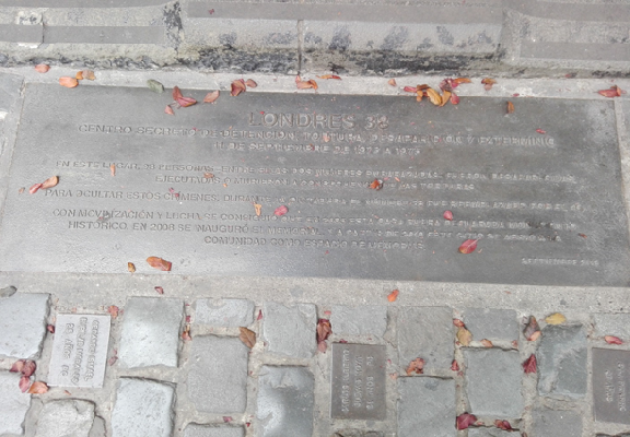 Santiago de Chile. Placa no chão, em frente de Londres 38