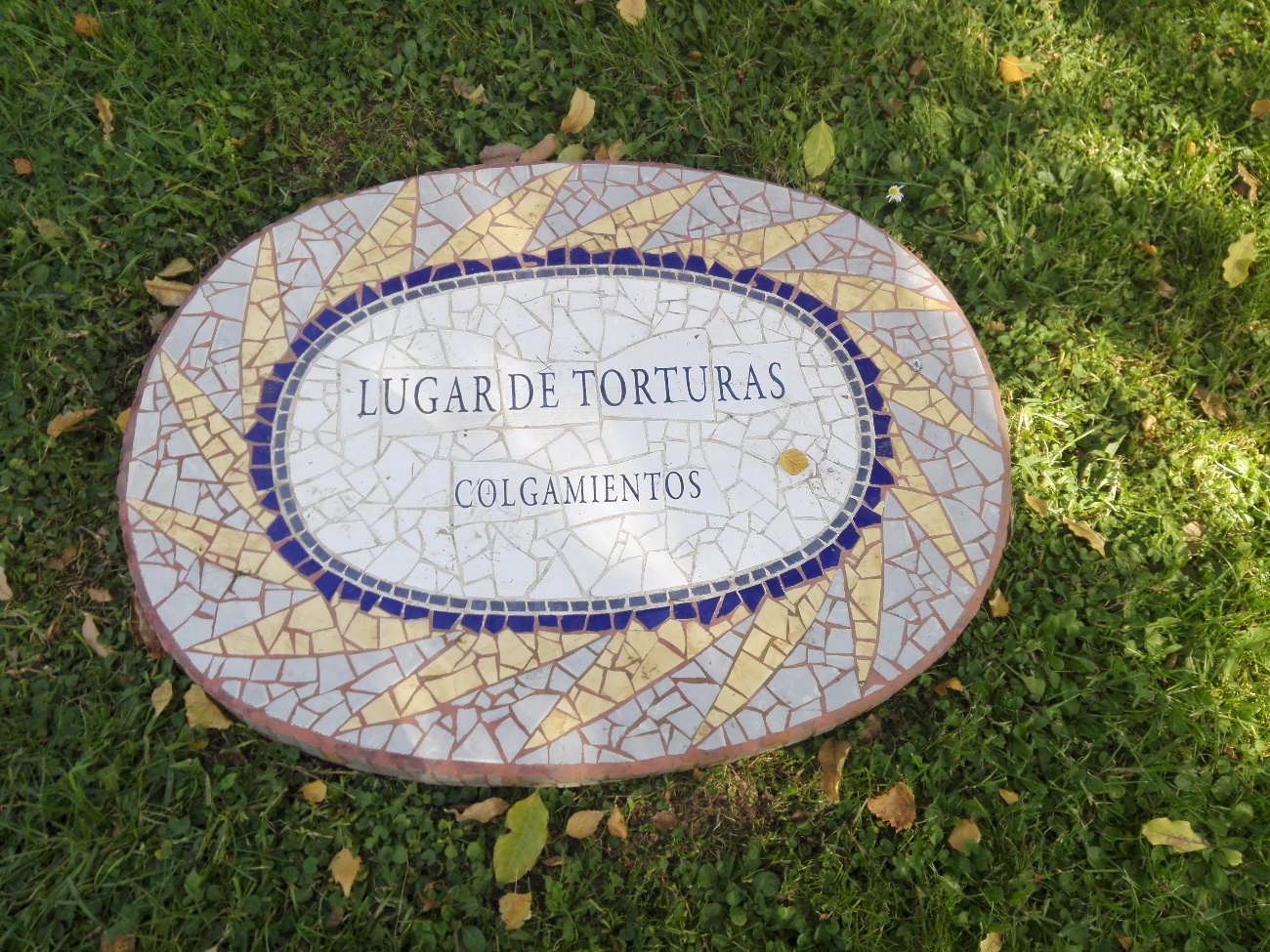 Placa evocativa de local de tortura, Villa Grimaldi, Santiago de Chile, foto de Abril de 2017.