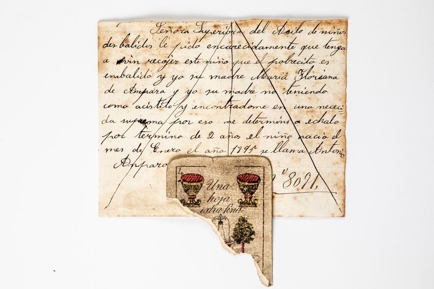 La escritura era el contrapunto perfecto a los objetos, era el discurso hablado, la palabra viva, que a su vez, también conformaba lo no dicho. El objeto simbolizaba, representaba acciones y sentimientos, mientras que la carta era el único instrumento que daba voz a los padres y madres. Carta y objeto (figuras 8 y 9), combinación perfecta que juntos conformaban las señales, y se transformaban en el elemento principal de un diálogo cifrado entre los progenitores, el Asilo y sus criaturas.