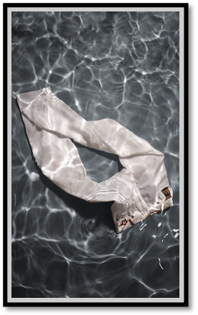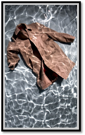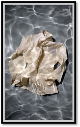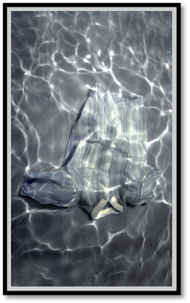 ¿En qué agua flota la ropa que vemos en la imagen (FIGURAS 11, 12 e 13)? No parece agua de río, ni de mar, es un agua limpia, lumínica, que contiene una sola prenda. La imagen de la prenda evoca su uso, evoca a las personas que la usan, pero no están presentes. ¿Qué causa la conmoción? Que efectivamente no hay personas. El vestido de niña, el short de joven, la camisa de hombre, el vestido de mujer, las gafas, los zapatos, el abrigo, el vestido de tirantas, la maleta: todo se refiere a las personas que no están, a los ausentes. En las fotos no aparece ningún sujeto, ningún cuerpo, pero el movimiento dado a la ropa evoca su uso, el cuerpo aparece en su ausencia, cual elemento que ha dejado su impresión en el molde, el cuerpo aparece en su negación.La forma de presentación de los cuerpos en la obra Diettes es negativa, a través de los elementos que recubrían un cuerpo que no está, cuerpo que no tiene una materialidad.