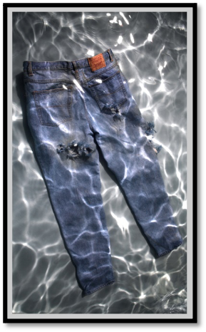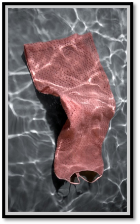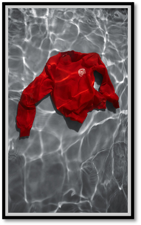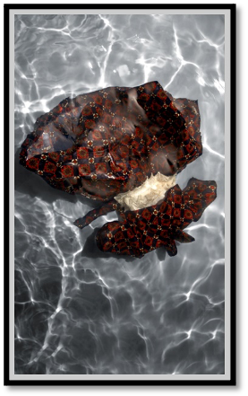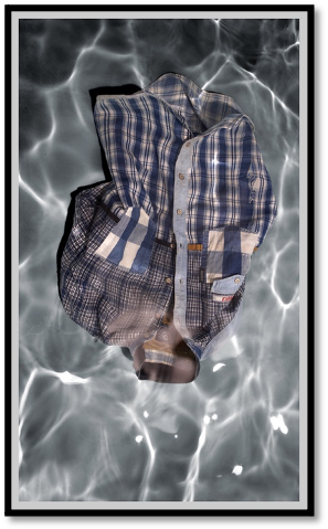 Río Abajo está construida a partir de 26 fotografías de prendas de personas desaparecidas a causa del conflicto armado colombiano, que se presume están en ríos del Oriente Antioqueño[3], Chocó[4], Caquetá[5] y Bogotá[6], las imágenes fueron tomadas entre los años 2007 y 2008 (ARTE…, 2016). La técnica de la obra es fotografía digital impresa sobre cristal. “En estas imágenes de gran formato impresas en vidrio se pueden apreciar las prendas sumergidas en agua: un agua transparente que las muestra en un estado aséptico” (ARTE…, 2016) (FIGURA 1).