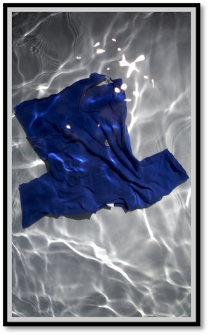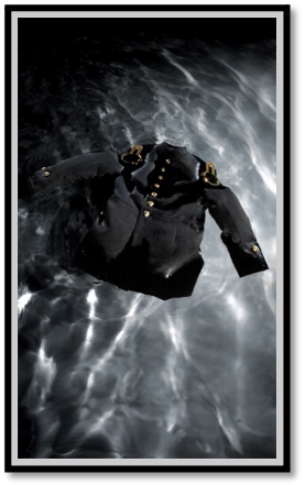 En una entrevista en Semana Rural, Diettes afirma que esboza Río Abajo en Bogotá entre 2005 y 2006, momento en el cual la madre del Mayor Julián Ernesto Guevara[8] aparecía en diferentes vallas publicitarias pidiendo la entrega del cadáver de su hijo, pues sabía que había muerto en cautiverio (PUENTES, 2018). Ante esto, a la artista se le ocurrió hablar con Emperatriz de Guevara y pedirle que le prestara la ropa de su hijo para llevarla al estudio[9] y buscar las imágenes del proyecto, es así como la fotografía del uniforme de gala del Mayor sumergida en agua (FIGURA 4) es la primera imagen de la obra[10], ese primer acercamiento a la prenda implicó determinar la temperatura del líquido en donde flotaba el traje y la calidad del agua