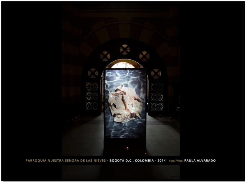 En el 2016, Diettes instala Río Abajo en el Museo Rayo[2] del municipio de Roldanillo del departamento Valle del Cauca, Colombia. Además, la artista lleva la obra a los 18 municipios del nordeste del país en donde se ubicaban los familiares de las víctimas que habían decidido entregarle una prenda o un objeto que representaba a su ser querido detenido desaparecido. Diettes, en una entrevista de una cadena radial colombiana, manifiesta que en el trabajo de campo le entregaron 150 objetos que posteriormente fueron fotografiados; aunque algunas exposiciones no integran las 150 fotografías, la artista decide que, para la muestra en los municipios habitados por los familiares de las víctimas de desaparición forzada, las imágenes estén en su totalidad (ERIKA DIETTES, ARTISTA, HABLA DE SU OBRA RÍO ABAJO, 2010). Algunas exposiciones de Río Abajo se han realizado en espacios que convencionalmente están relacionados con la congregación de las personas alrededor de ritos vinculados a una creencia metafísica: los templos. En los templos generalmente se vincula la creencia de la existencia del espíritu más allá del cuerpo representado en la resurrección de Cristo. La creencia en Cristo se fundamenta en la existencia de un ser que ha vencido la muerte, una muerte dolorosa, trágica, muy común también en los cuerpos de los santos y de los mártires de la Iglesia. El cuerpo de Cristo que fue torturado no está en el sepulcro, no aparece, así como tampoco en la obra aparecen cuerpos. Las imágenes de la obra nos presentan, según Ileana Diéguez, “la estela corporal, objetual, puesta ante los ojos, del ser violentamente perdido” (DIEGUEZ, p. 7, 2019?).