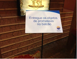 En ese sentido, Aparecida se presenta como una forma peculiar de gestionar y exhibir los objetos. Parte de la gente que visita el santuario lleva sus exvotos a un escritorio, como se ve en las imágenes 11 y 12, donde se inicia la gestión y administración de dichos objetos, se toma nota, se guarda, posteriormente, personal interno elige cuáles exhibir temporariamente y pasarán a reemplazar a otros en las vitrinas de exposición.
