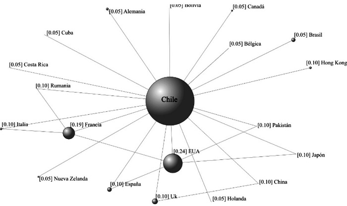El incremento sostenido de la producción científica sobre dirección en Chile permite analizar la dinámica de la estructura de colaboración internacional en esta disciplina que emerge de la interacción de los investigadores con sus pares de universidades de otros países.