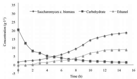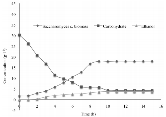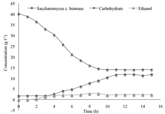 All fermentations processes were carried out using different concentrations of carbohydrates of Gracilaria chilensis (red macroalgae) which were inoculated with a defined optical density of Saccharomyces cerevisiae, under controlled oxygen, pH and temperature conditions.