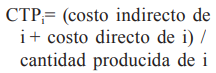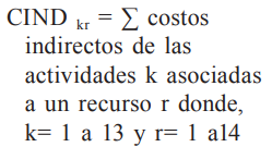 Una expresión general para la determinación de los costos indirectos que relaciona actividades y productos (CIND) es