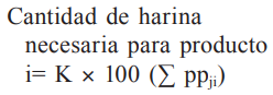 La cantidad de harina (criterio práctico para elaborar productos en panaderías) para un producto i y la metodología general para la determinación de los costos directos totales se expresan en las Ecs. 16 a 18.