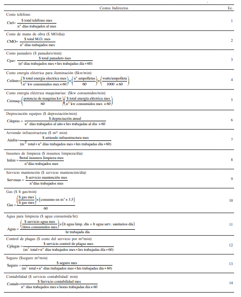 El proceso de costeo se puede organizar en base a una secuencia de seis pasos principales el cual considera en forma explícita un conjunto de 18 ecuaciones simples de aplicación en el segmento de pequeñas y medianas empresas de la industria del pan.