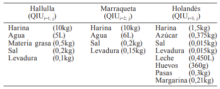 Para la determinación de los costos directos se recurrió a información técnica y criterios presentados en Cerón et al. (2011), donde se provee una metodología y criterio para determinar los costos directos a partir de los kg de producto a producir y de la proporción de harina a utilizar para cada producto, según prácticas de producción reconocidas en la industria.