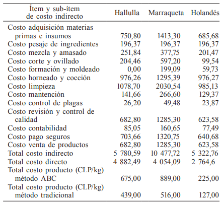 La validez interna de los resultados obtenidos se considera aceptable debido a que los costos se determinaron mediante el enfoque tradicional y el enfoque ABC, proceso que ayudó a conocer más rigurosamente los factores que realmente inciden en un proceso de producción de tres tipos de pan con alto nivel de comercialización y, además, se contó con el apoyo del personal técnico y administrativo de empresas afines que conocía efectivamente las características reales de este tipo de proceso productivo. Por otra parte, los resultados comparativos entre el sistema tradicional de costeo y costeo ABC confirma lo que habitualmente se encuentra en otros casos, que el costeo tradicional generalmente se encuentra subvalorado respecto del costeo ABC.