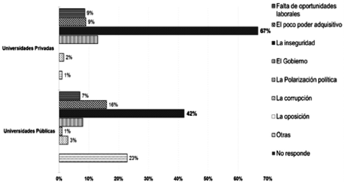 Los estudiantes reconsiderarían la emigración en caso de que: cambiara el gobierno, mejoren temas de seguridad y situación económica.