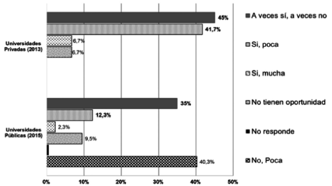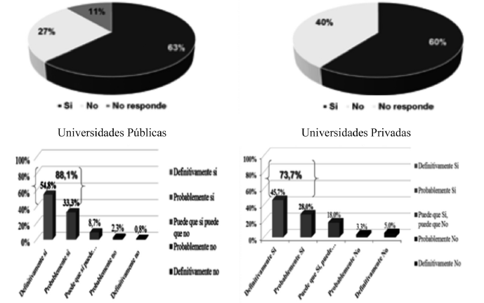 El 88,1% de los estudiantes en universidades públicas en 2015 tienen intención de emigrar, significando un incremento de 14,4% con respecto al resultado en 2013 de las universidades privadas.