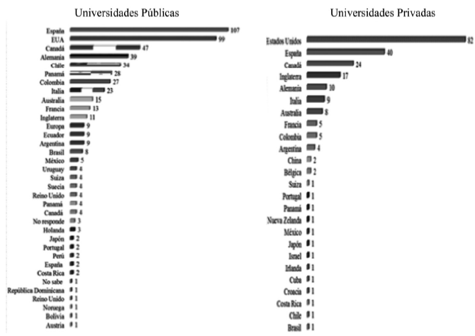 Los posibles destinos escogidos por los estudiantes son países desarrollados: España, EUA y Canadá, aunque existen algunas preferencias por países latinoamericanos. De los estudiantes con doble nacionalidad, la mayoría emigraría al país del que posee la misma.