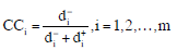 O Fuzzy TOPSIS é uma extensão da técnica TOPSIS usada para resolver problemas de tomada de decisão multicritério, foi originalmente proposta por Hwang e Yoon (1981), incluindo avaliações difusas de critérios e alternativas (Awasthi et al., 2010; Shen et al., 2013). Nesta abordagem, usada amplamente em problemas de tomada de decisão, a solução ótima deve ter a menor distancia da solução ideal positiva (FPIS+) e a maior distância da solução ideal negativa (FNIS–), representadas pelas Eqs. 2 e 3, chegando a um coeficiente de proximidade (CCi), expressado pela Eq. 4 (Tyagi, 2015). A modelagem completa está presente nos estudos de Awasthi et al. (2010), Shen et al. (2013), Jabbour et al. (2013) e Mangla et al. (2015).