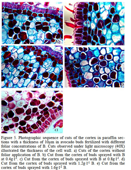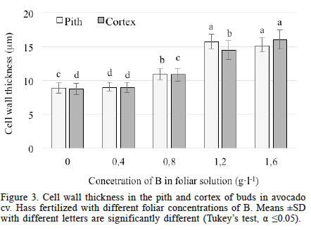 Based on the enhanced cell wall thickness observed, a concentration of B at 1.2g·l-1 is recommended for foliar application in avocado cv. Hass.