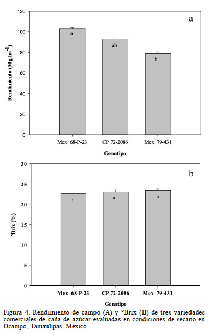 Estos resultados confirman la necesidad de identificar variedades de caña sobresalientes para este tipo de condiciones con altos riesgos de estrés abiótico (hídrico y/o calor). Una variedad adecuada para estas condiciones es un genotipo estable; es decir, aquel que tenga un rendimiento alto y se comporte consistentemente en diferentes ambientes (Rea y de Sousa-Vieira, 2001).