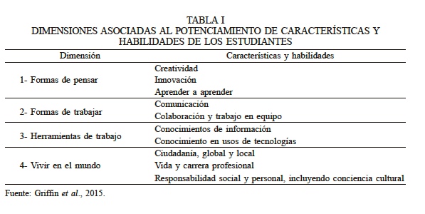 En la dimensión 1, las características y habilidades se vinculan con el potenciamiento de la creatividad, entendida como la capacidad para resolver un problema de manera original y, que pueda llegar a ser una solución valorada en un contexto determinado (Goleman et al., 2016). Ser capaces de pensar de forma creativa, gestionar el cambio y resolver problemas complejos y abiertos, son aspectos relevantes para contribuir al crecimiento de la comunidad. Para dar cumplimiento a esta expectativa, es imprescindible que los estudiantes aprendan a investigar para autogenerar conocimiento. En la dimensión 2, las habilidades para mejorar la comunicación con el equipo de trabajo se potencian, debido a la necesidad de colaborar y socializar las ideas. Está en perfecta correlación con la dimensión 3, ya que en la medida que el dominio de información y las herramientas para adquirirla son comprendidas y puestas en práctica, el discurso de los estudiantes es fortalecido. La dimensión 4, ‘vivir en el mundo’, evidencia el cambio de enfoque respecto de la vida, que significa mayores valoraciones respecto del entorno inmediato desde perspectivas amplias y transversales, a diversos campos de actuación cercanos y futuros de los estudiantes.