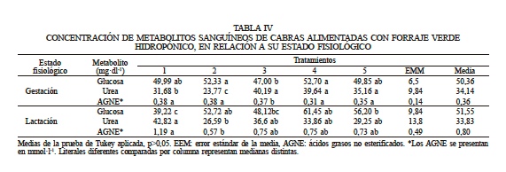 La importancia de la nutrición en las cabras lecheras radica en sus necesidades nutricionales, ya que hacia el final de la gestación y durante las primeras semanas de la lactancia, hay un aumento en la demanda metabólica para el crecimiento fetal y la producción de leche, por lo que descuidar la dieta de los animales puede dirigirnos a un balance energético negativo, donde las pérdidas de energía superan a la dieta (Posada et al., 2012). La evaluación de metabolitos sanguíneos permite determinar los requerimientos nutricionales, vías metabólicas y realizar un diagnóstico de desbalances de esta naturaleza (Wittwer, 1993). El objetivo del estudio fue evaluar metabolitos en cabras lecheras alimentadas con FVH, y compararlos con los niveles normales para establecer bases informativas sobre la alimentación suplementaria del ganado caprino con este tipo de forraje y probar la eficiencia de la dieta.