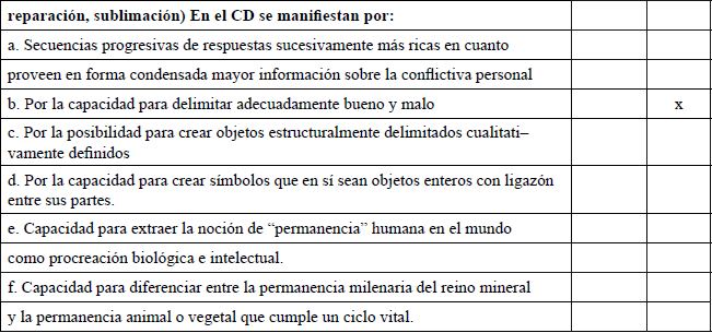 La grilla que a continuación presentamos registra la interpretación del CD del niño en análisis.