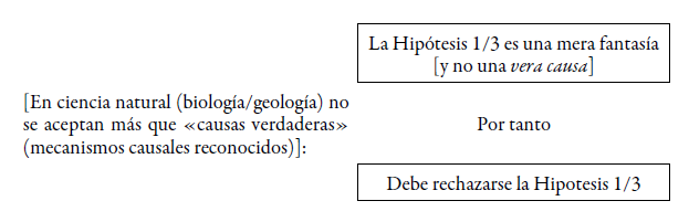 En este caso, en cambio, parece aceptarse la plausibilidad inicial del argumento que supuestamente habrían ofrecido los proponentes de hipótesis semejantes a las enumeradas como 4 y 5 (presumiblemente de tipo abductivo, aunque esto tampoco se hace explícito).
