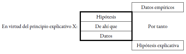 Podemos entender que se presupone aquí que los proponentes originales de tales hipótesis podrían haberlas sostenido inicialmente conforme a un simple «esquema abductivo» (es decir, por ser, sencillamente, «explicativas», conforme a alguna idea, aunque fuera difusa, de «explicación»).
