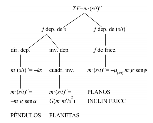Cada aplicación específica de la ley de Newton requiere, como lo han acentuado repetidamente Cartwright [y, añadiríamos nosotros, los análisis estructuralistas de la mecánica clásica], la especificación previa de una función fuerza adecuada. […] Qué funciones fuerza son aplicables no es parte del argumento esquemático. Ni puede esto ser añadido a las instrucciones de llenado, simplemente debido a que las funciones fuerza pueden ser demasiado diversas, o pueden estar no especificadas por el momento. (Psillos 2007, 140-141)