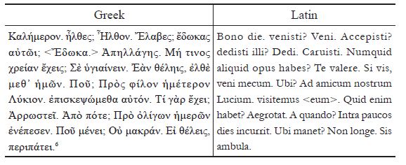 Thus, let us observe this excerpt from Hermeneumata Pseudodositheana III - Colloquium Monacensia: