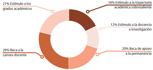 Asimismo, en la propia legislación podemos encontrar los programas que diversifican el salario: El estímulo a la docencia e investigación; Beca de apoyo a la permanencia del Personal Académico; Beca al reconocimiento de la carrera docente; Estímulo a los grados académicos y Estímulo a la trayectoria sobresaliente.