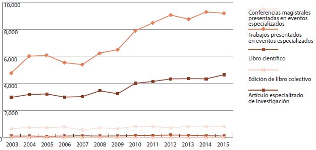 Lo individual se encuentra por encima de lo grupal, sobre todo porque el otorgamiento de las becas y estímulos es en función del desempeño particular, con ello se deja de lado la participación colectiva. Todo esto lo podemos observar en los rubros a evaluar, por ejemplo, se tiene en lo colectivo el indicador de elaboración de libros colectivos y en contraparte se encuentra el de conferencias magistrales; el promedio entre 2003 y 2015 que se evaluó a lo primero es de dos, mientras que las conferencias magistrales nos dan un promedio de 741.