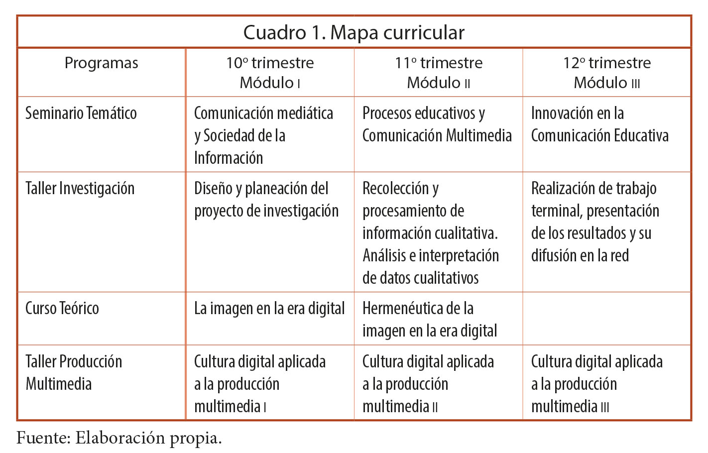 De esta forma, el mapa curricular del Área de Concentración Comunicación Multimedia aplicada a proyectos educativos adquiere la configuración del Cuadro 1: