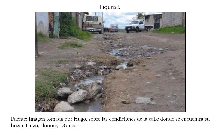 En el entorno que comparten las y los estudiantes se puede encontrar una cantidad importante de desigualdades geográficas entrelazadas como Fitoussi y Rosanvallon (1997) proponen, con las desigualdades derivadas de la falta de servicios, de seguridad, de acceso a los apoyos financieros y que derivan en fuertes desigualdades en la vida cotidiana. Se observa en las fotografías la carencia de algunos servicios básicos, por lo tanto, una calidad de vida precaria, la falta de seguridad en sus trayectos y los costos elevados en relación a los proporcionados en la Ciudad de México.