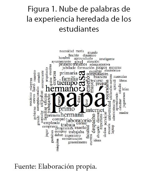 En las siguientes figuras se observan las palabras que los jóvenes universitarios relacionan, tanto con su experiencia heredada (Figura 1) como con la experiencia adquirida (Figura 2).