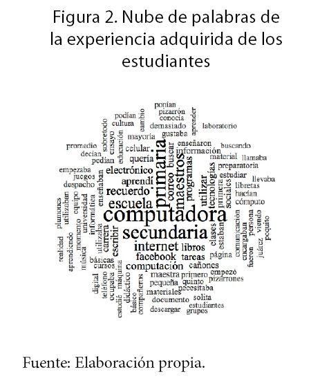 Un camino diferente fue el de otro grupo de jóvenes, quienes manifestaron haber tenido un aprendizaje de tecnologías que, si bien inició desde la educación básica, se dio a través de experiencias diferentes como clases extracurriculares ligadas a temas computacionales, adquisición de equipos de segunda mano y acceso a internet en sitios de renta como cibercafés. Algunas de las expresiones fueron: “Mi mamá me pagaba unas clases de computación en sexto de primaria […], así empecé a tener contacto con eso de las computadoras porque no sabía ni cómo se prendían […] En prepa me regalaron mi primera computadora, una laptop reconstruida” (Medicina, Karina, 21 años); “en la primaria, algunas cosas que no encontraba en algún libro, me iba al ciber de la esquina” (Publicidad, Gerardo, 21 años).