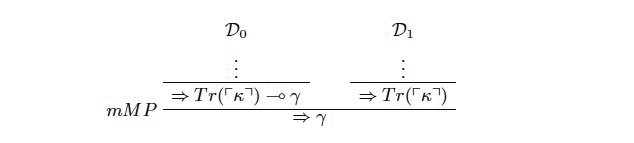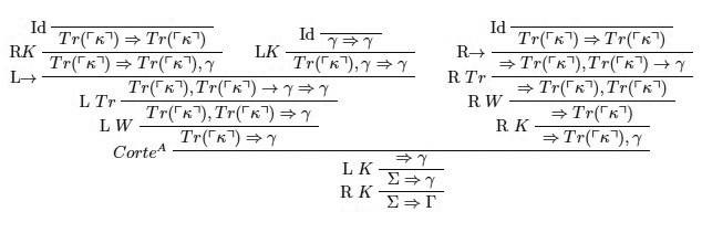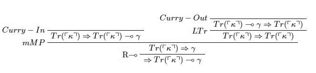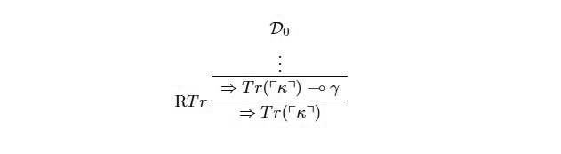 donde κ es la oración de Curry definida en la Sección 2, i.e. una oración que es equivalente a Tr(⎡κ⎤) ⊸ γ, donde γ es cualquier oración que no quisiéramos probar en la teoría.23
