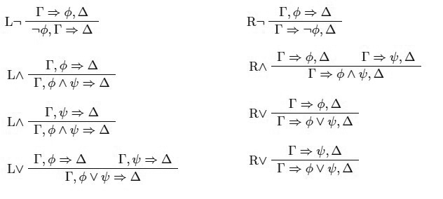 donde φAt es una oración atómica. Como es usual, el cálculo SCL es correcto y completo para la lógica clásica. Un condicional es definible a partir de las reglas de la negación y de la disyunción como es usual: